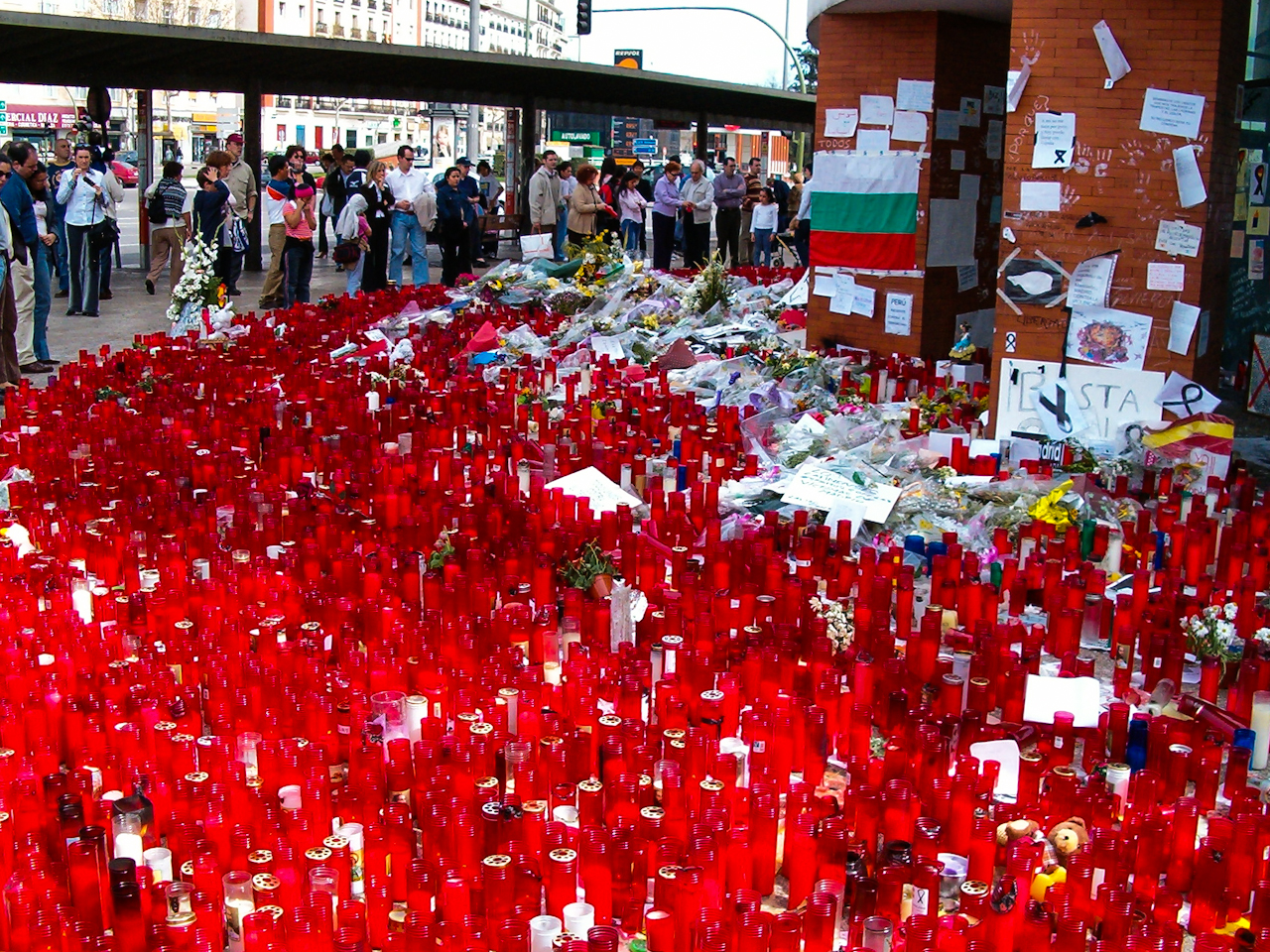 El olor de las miles de velas que inundaban la entrada a la estación y el vestíbulo de Atocha impregnaban el aire de una atmósfera dulzona. Cuando me acerqué, solo, varios días después, a aquel santuario improvisado en que se había convertido la entrada de cercanías ideada por el equipo de Moneo me quedé fascinado, pero más aún cuando descendí al vestíbulo y noté en mi cara el calor que desprendían ese manto bermejo de velas que tenía ante mí, hasta el punto de que me costaba sostener la cámara con la que saqué algunas fotos. Porque decidí que ésa era mi misión, fotografiar para la posteridad aquello que tenía delante de mis ojos. No importaba la calidad de las tomas, sino el hecho de estar ahí, de servir para que eso se recordara por siempre jamás. Recuerdo que me costó mucho hacer el gesto de sacar la máquina de su bolsa y mirar por el objetivo. Parecía irrespetuoso, pero ahora me alegro, de las que hice en Atocha y en Téllez, y que podéis ver ilustrando este post y en mi cuenta de Flickr.